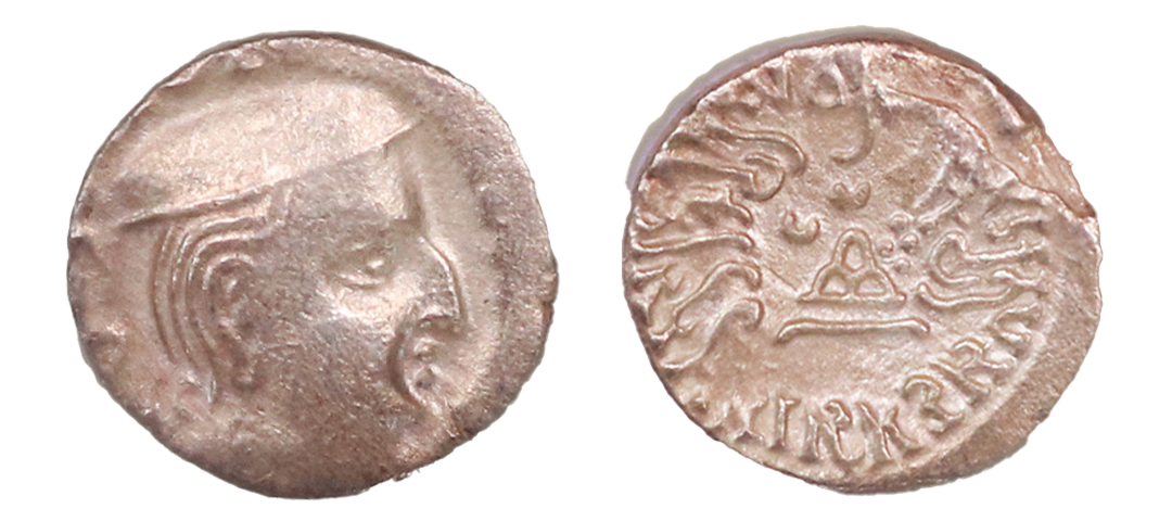 Western Kshatrpas, Nahapana, Silver Drachms, 2.26gms, OBV: Bust of Nahapana facing to right, around corrupt Greek inscriptions, REV: Arrow and thunderbolt with Kharoshti legend and Brahmi legend ‘Rajno Kshaharatasa Nahapanasa’ on left field. (Pieper # 3352). Very Fine.