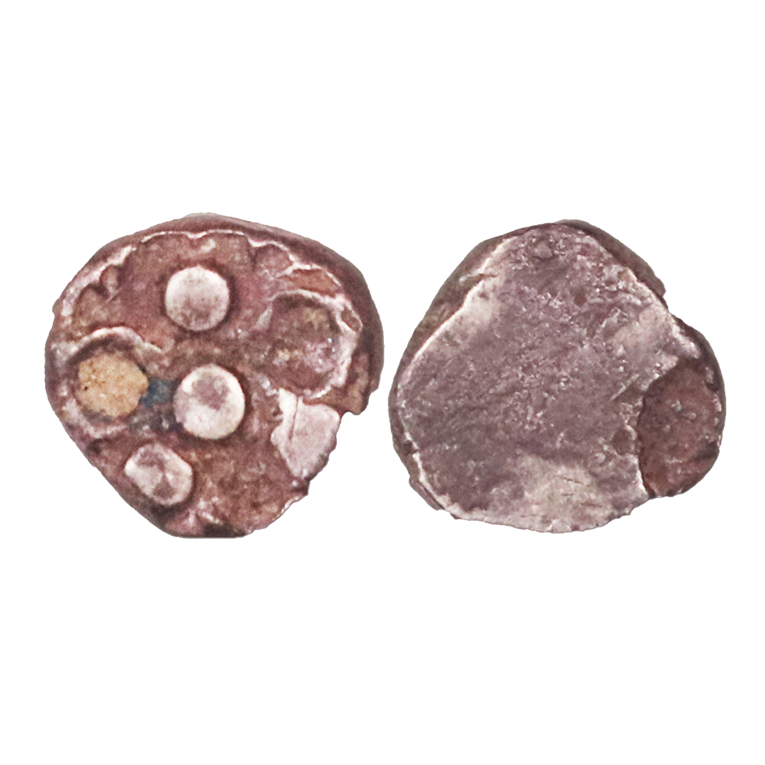 Punch Marked, Kosala Janapada (c. 525-465 BC), Silver karshapana, 3.47gms, OBV: Usual ™Sâ™ type geometrical symbol with other symbol, REV: various Banker’s mark. (Rajgor # Series 64). Fine.