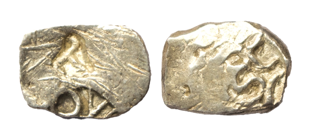 Ancient, Archaic Series, Punch Marked Coinage, attributed to Pauravas of Kaushambi (c. 400-350 BC), Silver 1/2 Karshapana, very fine+, very rare.