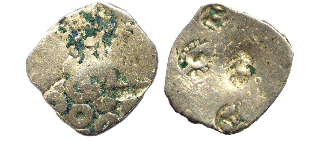 Ancient, Punch Marked Coinage, Kosala Mahajanapada (5th-4th Century BC), Silver Half Vimshatika, 3.17 gms, Obv: Elaborate Flower symbol and other punches, Rev: Multiple Banker’s marks, Hardaker, # Non imperial series, Series 3, KO 47, pg 190, very fine, rare.