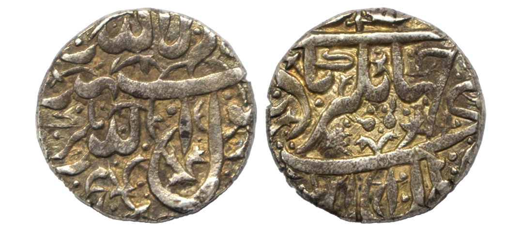 Archaic Coinage, Punch Marked, Mauryan Period (c. 300-250 BC), Silver Karshapana, 2.67Grms, Five symbol types, OBV: Sun, six armed, damru, small taurine and other geometric symbol, REV: Traces of banker mark. Very Fine.