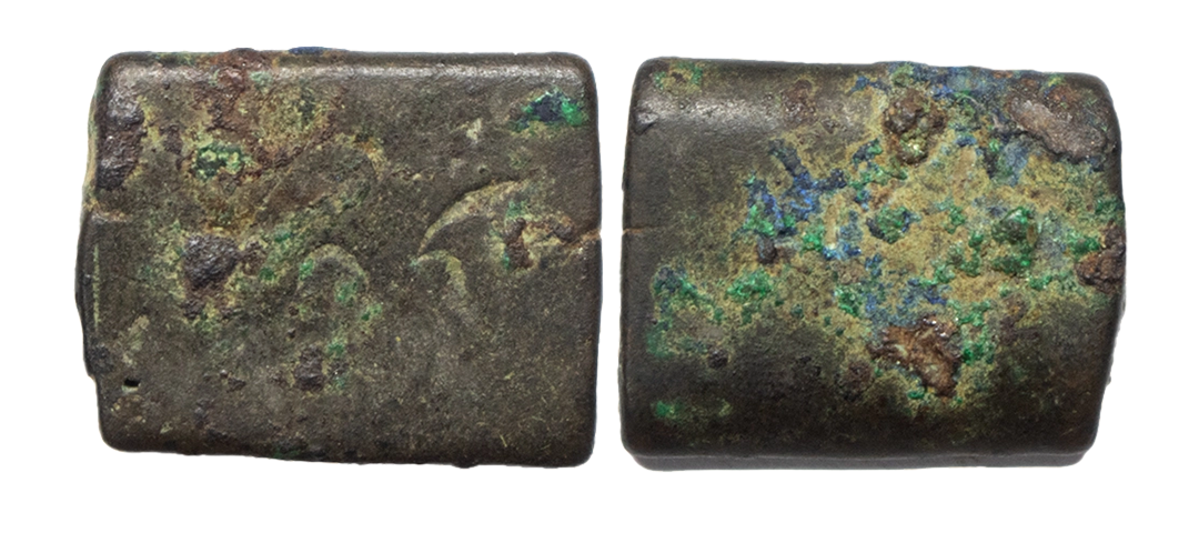 Archaic Coinage Punch Marked from Bihar, attributed to Anga Janapada (c. 300-200 BC), Copper Karshapana, 6.39Grms, OBV: Traces of symbol including sun and three arched hill, Uniface. (Mitch # ACW 4608). Fine