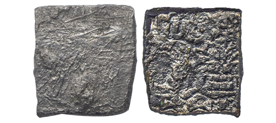 Post-Mauryan, Narmada Valley, Narayanmitra (c. 200 BC), Punch Marked, Copper Unit, 5.60Grms, OBV: Elephant, tree-in-railing, river with fishes symbol and traces of Brahmi legend mentioning the ruler name, REV: Blank. (Pieper # 916). Fine.