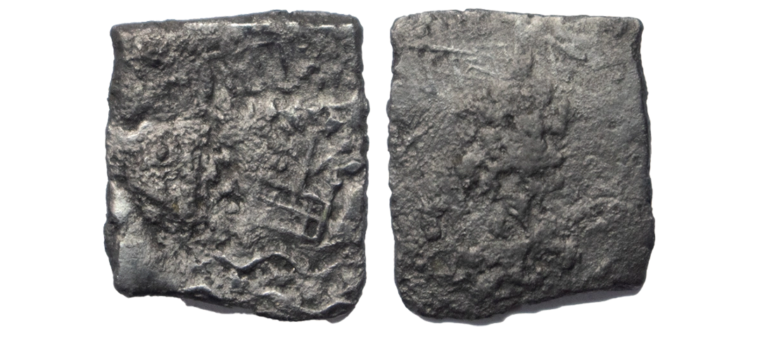 Post-Mauryan, Narmada Valley, Narayanmitra (c. 200 BC), Punch Marked, Copper Unit, 4.30Grms, OBV: Elephant (worn out), tree-in-railing, river with fishes symbol and traces of Brahmi legend mentioning the ruler name, REV: Blank. (Pieper # 916). Fine.