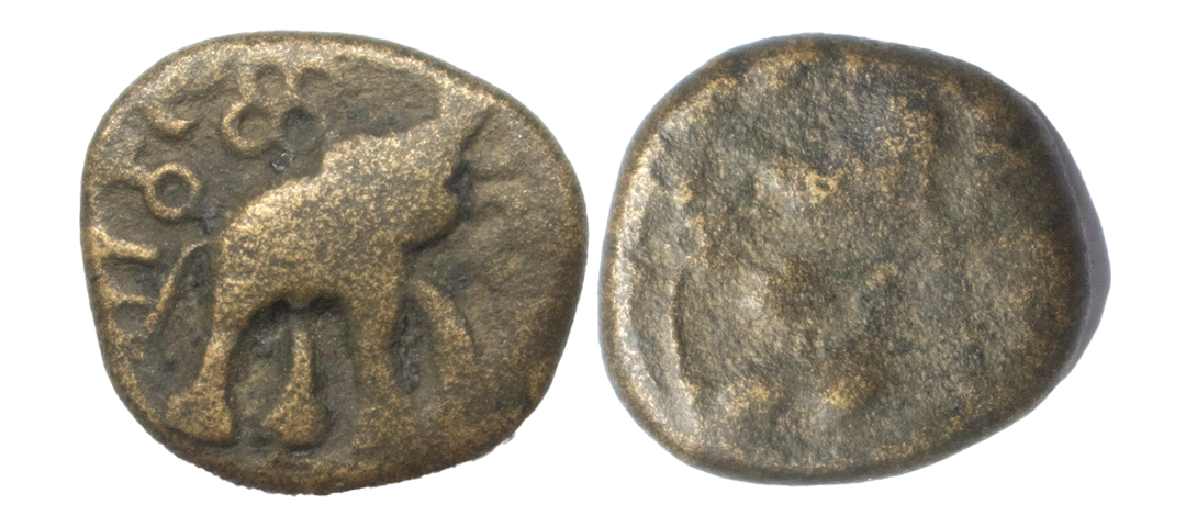 Satavahanas, Vasathiputra Pulamavi, Nevasa-Paithan Region, Copper, 10.48Grms, OBV: Elephant walking to right side with trunk upraised, above a group of four circle and around Brahmi legend ‘RanoVasi[thiputasasiripulumavisa], REV: Tree-in-railing with bold leaves. Fine.