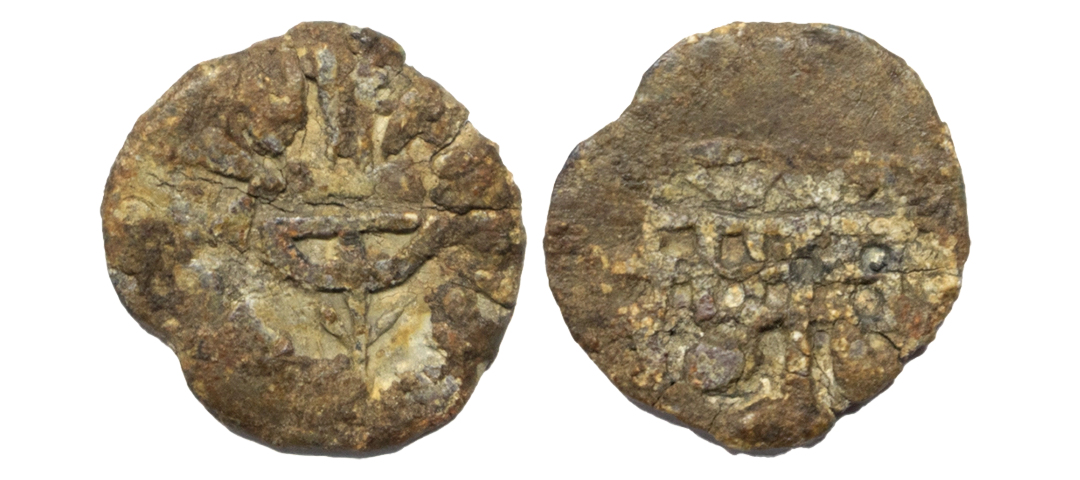 Kura of Kolhapur, Madhariputra Sivalakurasa, Lead Unit, 3.74Grms, OBV: Bow with arrow in centre and around Brahmi legend mentioning the ruler name and title, REV: Tree and ten arched hill above square box, inside river symbol. Fine.