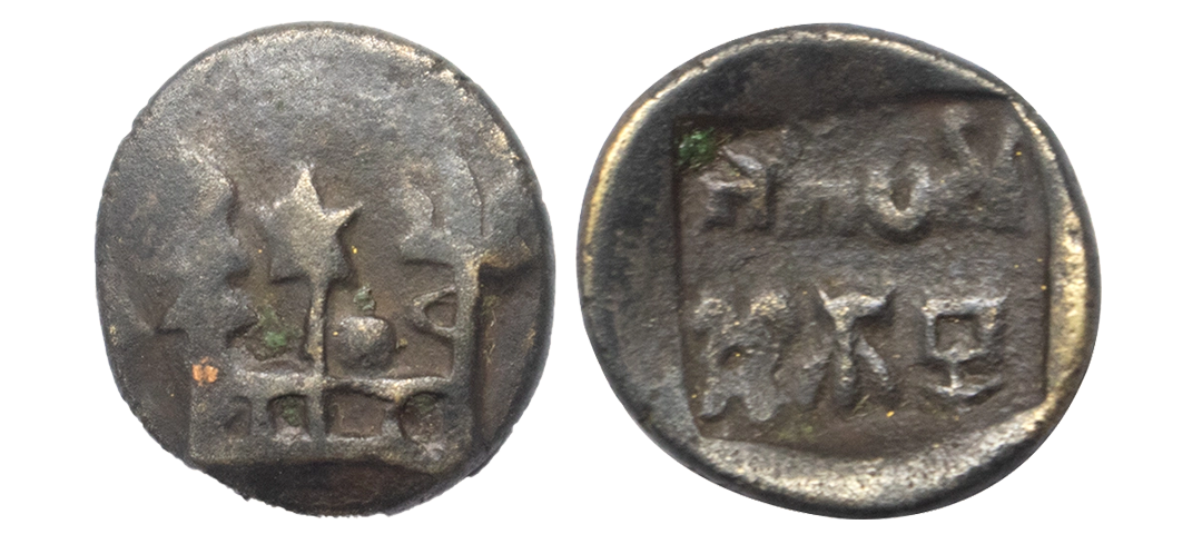 Panchala of Ahichhatra Dynasty, Rudragupta (c. 200-250 AD), Copper Unit, 4.50Grms, OBV: Royal symbol of Panchala on top and below Brahmi legend 'Rudraguptasa' in a deep square incuse, REV: Tree in centre trident axe on right and curved symbol on left. (Pieper # 1366). Very Fine+.