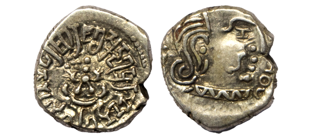 Ancient, Guptas, Skandagupta, Silver Drachma, 2.18 gms, Obv: Bust of king facing to right side, Rev: Winged garuda in centre, Brahmi legend around ‘paramabhagavatamaharajadhiraja sriskandaguptakramaditya’, almost completely struck specimen, very fine, rare.