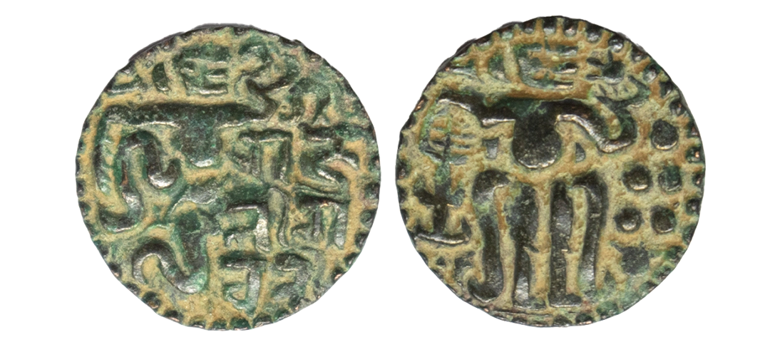 Ancient World, Ceylon Chola, Queen Lilavati (c. 1197-1212 AD), Copper Massa, 16.90Grms, Obv: Standing king, lamp at left, globes at right, Rev: King seated right with left arm raised, 4-line Nagari legend below arm ‘Sri ra ja Li la va ti’. (Codrington # 80). Very Fine.