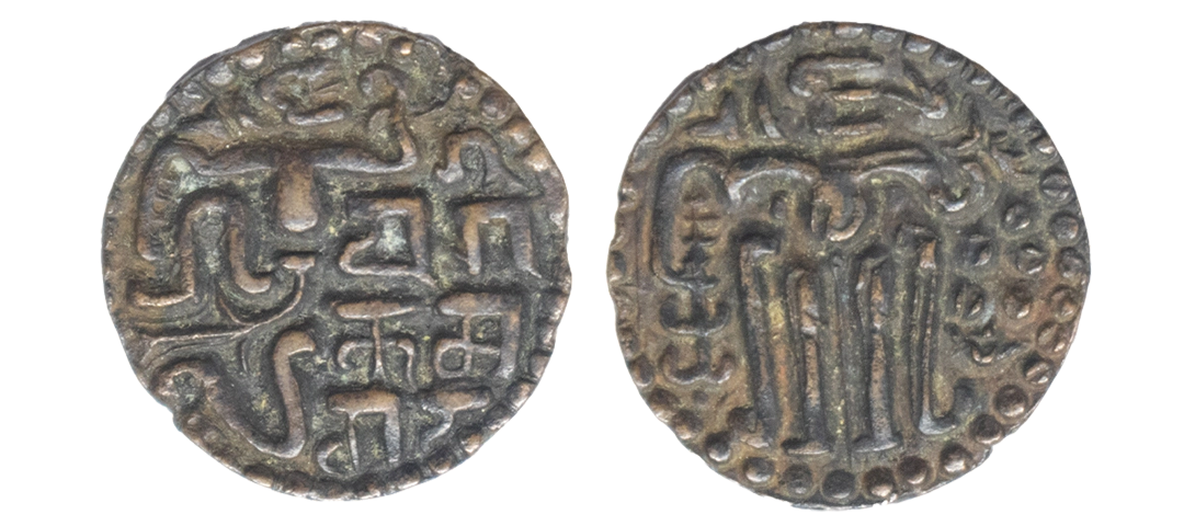 Ancient World, Ceylon Chola, Parakrambahu VI (c. 1415-1468 AD), Copper Massa, 12.04Grms, OBV: Standing king, lamp at left, globes at right, REV: King seated right with left arm raised, 4-line Nagari legend below arm ‘Sri Parakram Bahu’. Very Fine+.