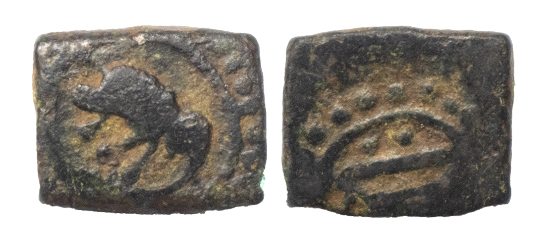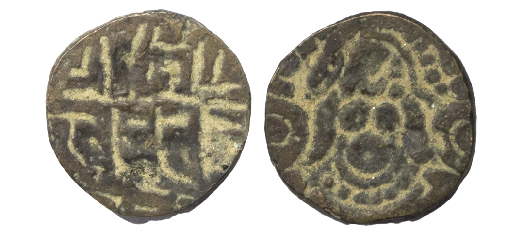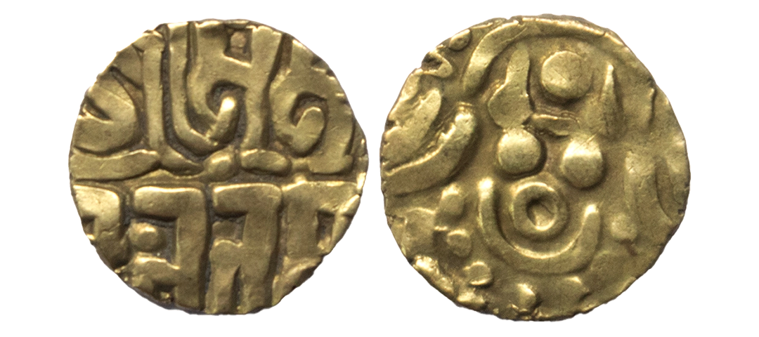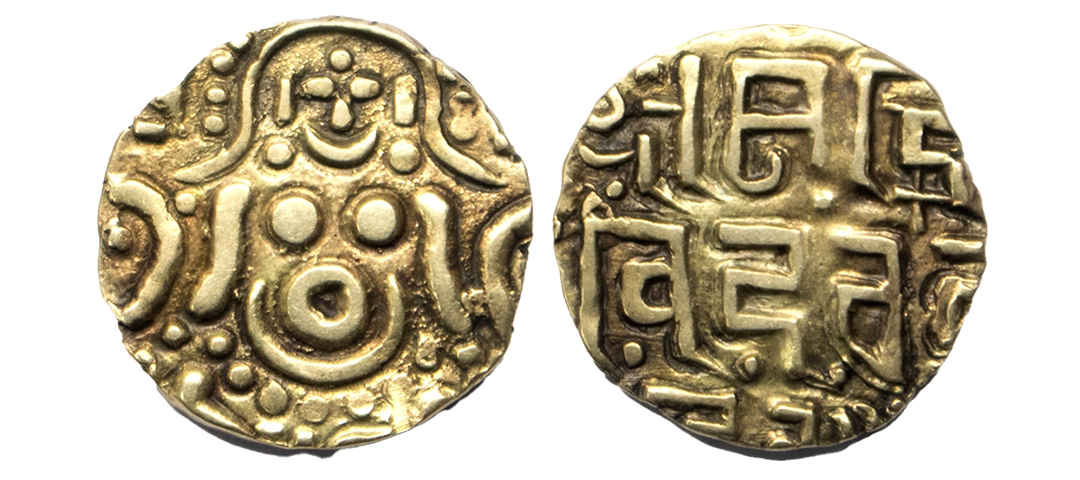 Gahadavalas of Kanuj, base gold 4½ masha of Govinda Chandra Deva (1114-1154 AD), Deyell 145, 4.21g. Obv: Goddess Lakshmi seated facing front. Rev: Devanagari legend Srimad Go/vinda Chandra/deva in three lines.