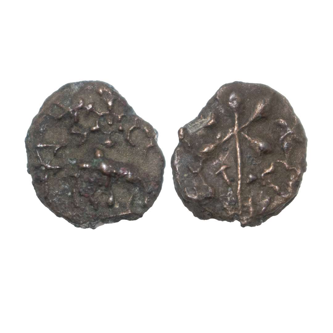 Taxila . B.c. 220-185 BC, AE unit (1.30 g),Obverse: Lion standing left with swastika above; taurine to left,Reverse: Blank,Ref: HGC 12, 787; MIG 546, Very Rare. Very fine