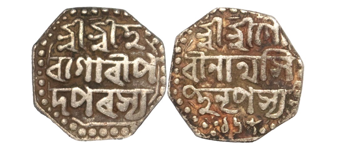Assam, Lakshmi Simha (SE 1691-1702 / 1769-1780 AD), Silver 1/4 Rupee, 2.78grms, SE 1699, Assamese legends on both sides, OBV: Sri Sri La / xmi Simha / Nripasya, REV: Sake 1699. (A.Mitra # 312). extremely fine