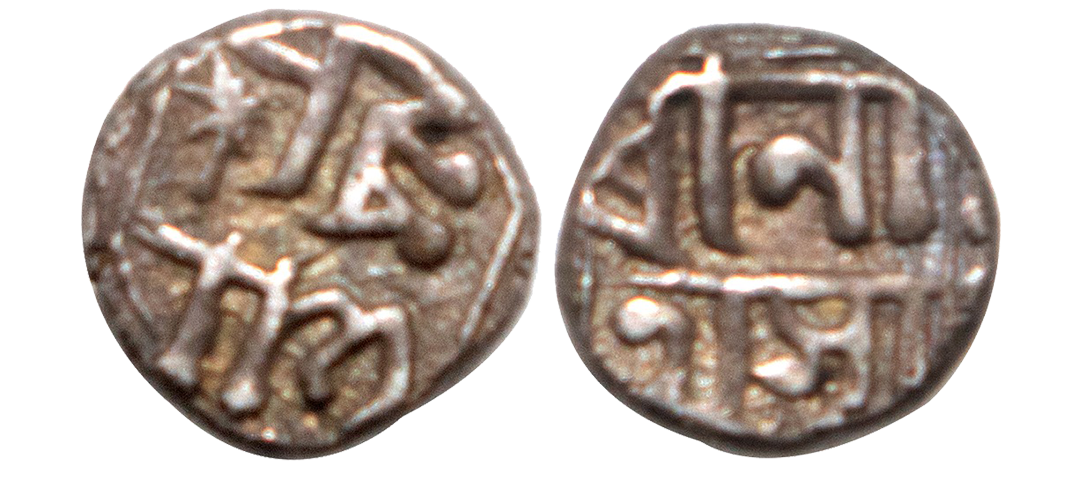 Assam, Gaurinatha Singa (SE 1702-1718 / 1780-1796 AD), Silver 1/2 Rupee, 5.48grms, Year 16, Assamese legends on both sides, OBV: Sri Sri Ha/ra Gauri Pa/da Parasya, REV: Sri Sri Gau/rinatha Sim/ha Nrpasya & year 16 at bottom. (A.Mitra # 383). extremely fine