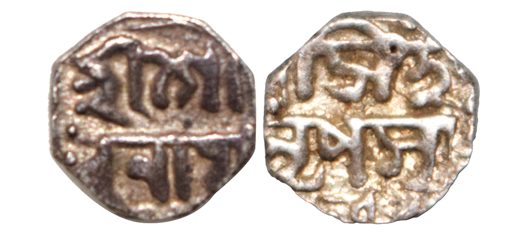 Assam, Gaurinatha Singa (SE 1702-1718 / 1780-1796 AD), Silver 1/2 Rupee, 5.48grms, Year 16, Assamese legends on both sides, OBV: Sri Sri Ha/ra Gauri Pa/da Parasya, REV: Sri Sri Gau/rinatha Sim/ha Nrpasya & year 16 at bottom. (A.Mitra # 383). extremely fine