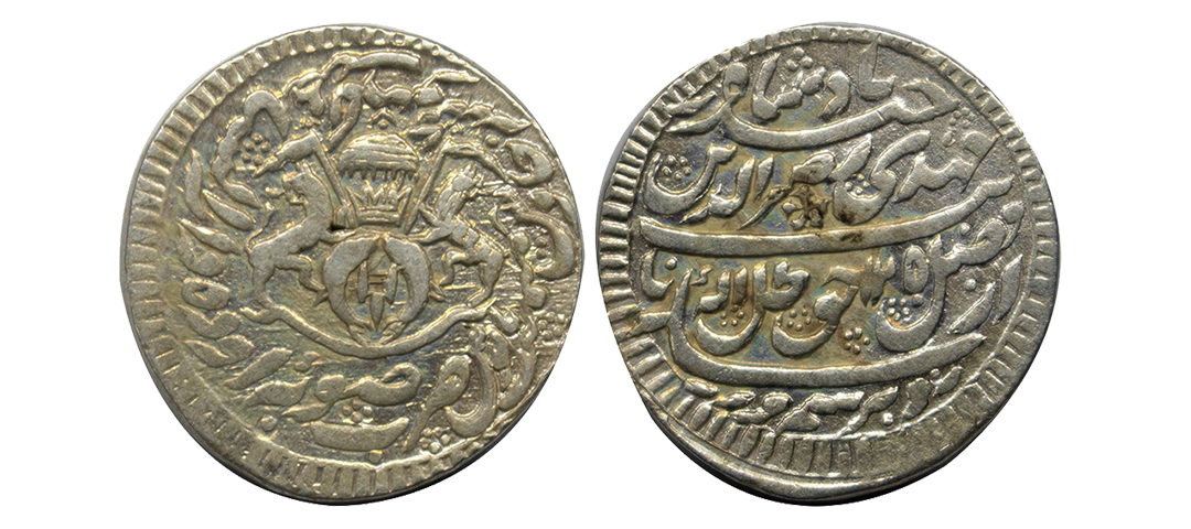 Princely States, Awadh, Saadat Ali Khan II, (AH 1212-1229 / 1798-1814 AD). Silver Rupee, 11.09grms, Muhammadabad Banaras Mint, AH 1221, fronzen RY 26, in the name of Shah Alam II, Fish and pataka on rev. (KM # 130.2).very fine