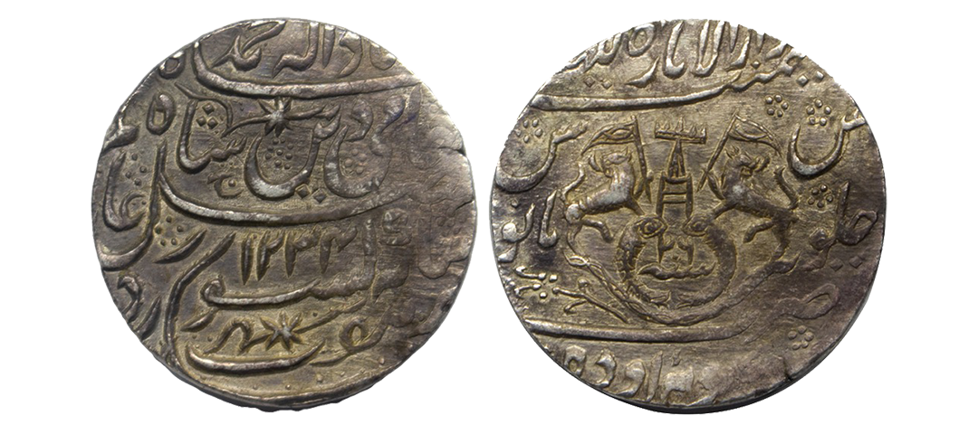 Princely States, Awadh, Amjad Ali Shah (AH 1258-1263 / 1842-1847 AD), Silver Rupee, 11.10grms, Mulk Awadh Bait us Sultanat Lakhnau Mint, AH 1262, mint variety V. (KM # 336). Extremely fine