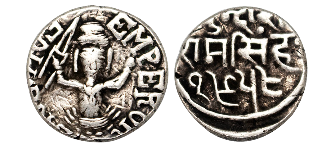 Princely States, Bharatpur, Jaswant Singh (AH 1269-1311; 1853-1893 AD, Silver Rupee, 11.05grms, Bharatpur Mint, with the name and portrait of Queen Victoria, VS 1910, with star and katar/dagger on rev. (KM # 156).uncirculated