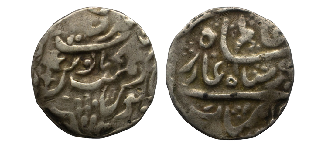 Princely States, Bundi, Ram Singh (VS 1878-1946 / 1824-1889 AD), Silver Rupee, 10.64grms, in the name of Edward VII, VS 1958, seated goddess holding katar on obv. (KM # Y11).very fine