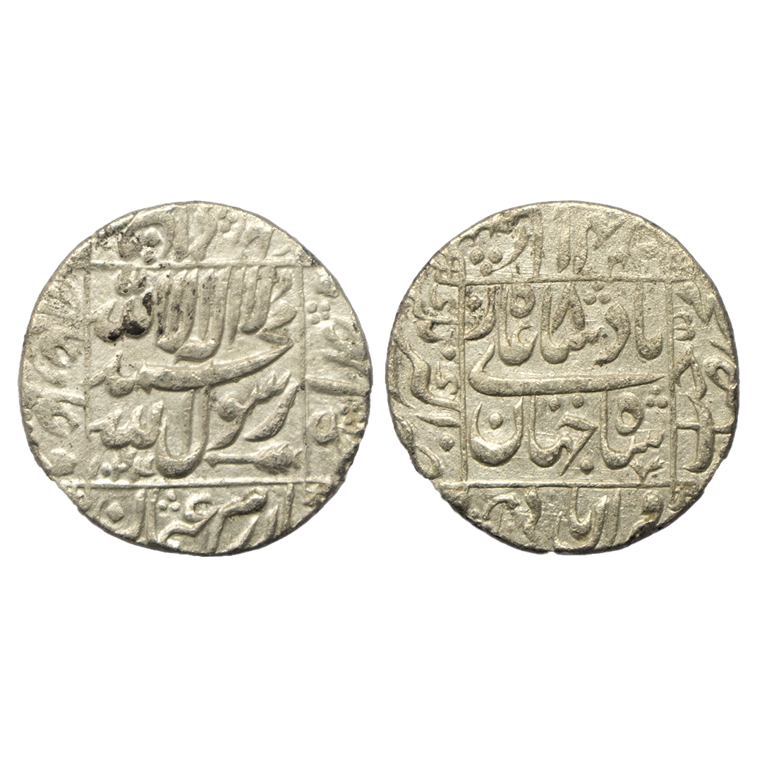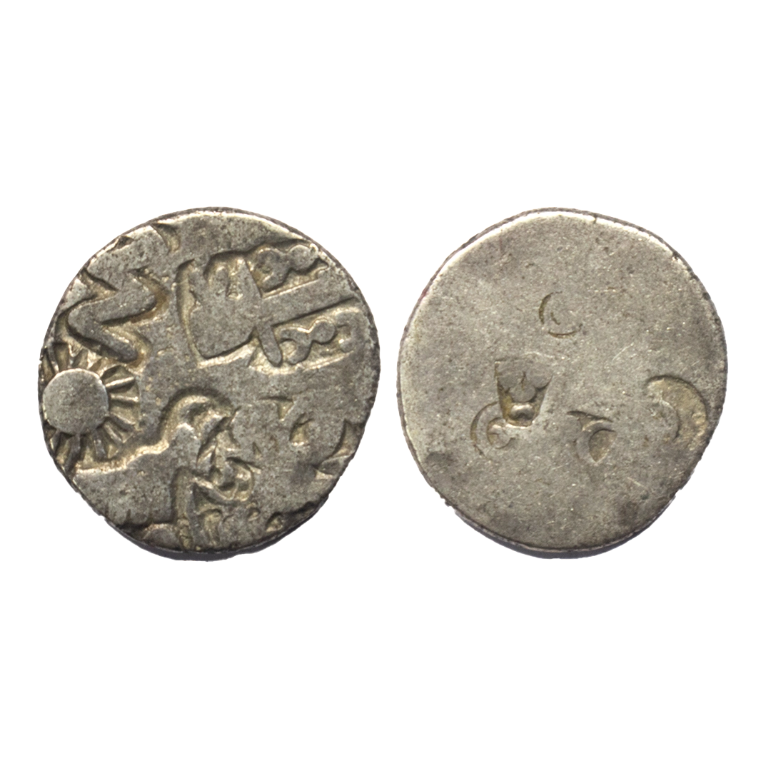 Archaic Coinage, Punch Marked, Mauryan Period (c. 300-250 BC), Silver Karshapana, 2.67Grms, Five symbol types, OBV: Sun, six armed, damru, small taurine and other geometric symbol, REV: Traces of banker mark. Very Fine.