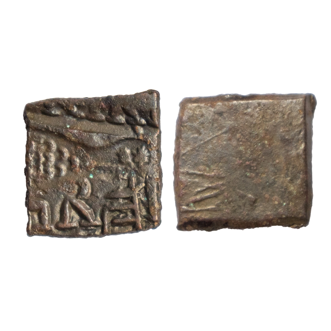 Post-Mauryan, Narmada Valley, Narayanmitra (c. 200 BC), Punch Marked, Copper Unit, 5.60Grms, OBV: Elephant, tree-in-railing, river with fishes symbol and traces of Brahmi legend mentioning the ruler name, REV: Blank. (Pieper # 916). Fine.