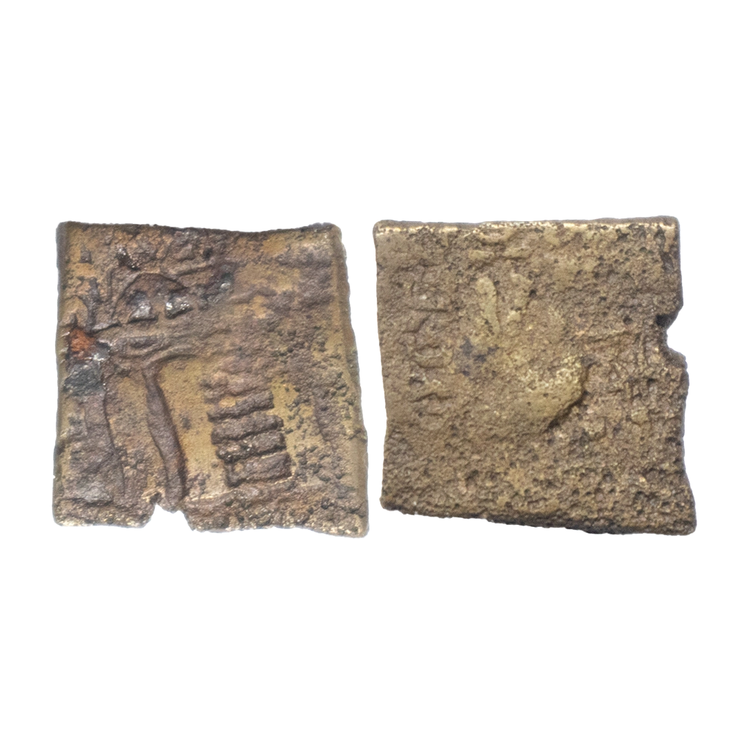 Pre-Satavahana, Vidarbha Region, Uninscribed type, Copper Unit, 4.84Grms, OBV: Elephant walking to right side above parasol and traces of other symbols, REV: Blank. Fine.
