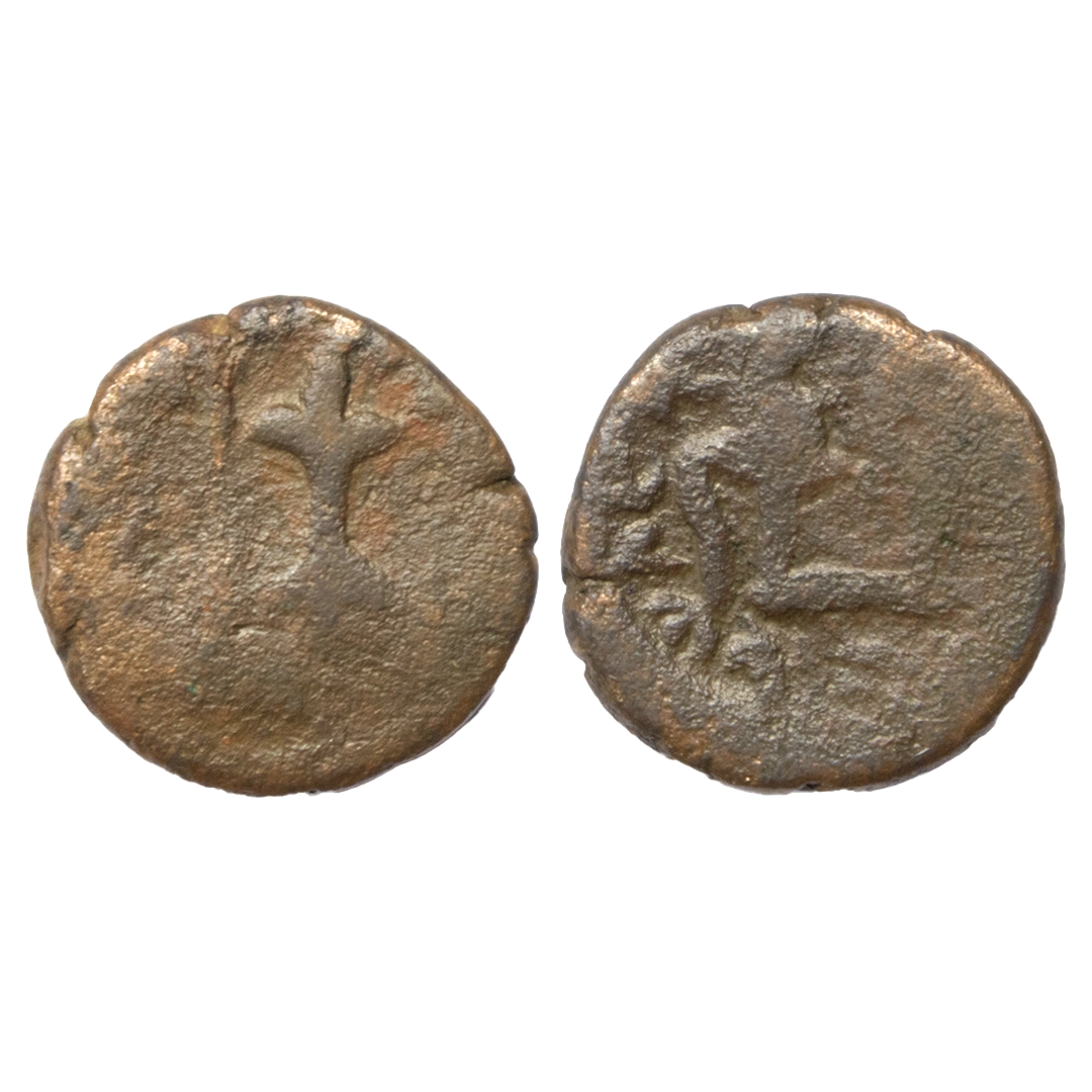 Ancient, Kushanas, Vasudeva II (c. 267-300 AD), Gold Dinara, 7.52 gms, Obv: Crowned, diademed king standing, holding trident and sacrificing at altar at left, Bactrian legend around ‘þAONANOþAO BA ZOΔηO KOþANO’ (King of Kings Bazodeo Kushan), Rev: Two-armed Shiva standing facing, holding trident and diadem, Nandi behind to left, Bactrian legend left ‘OηþO’, tamgha at right, Dotted border around, Göbl # 504, very fine, very rare. Condition as per image.