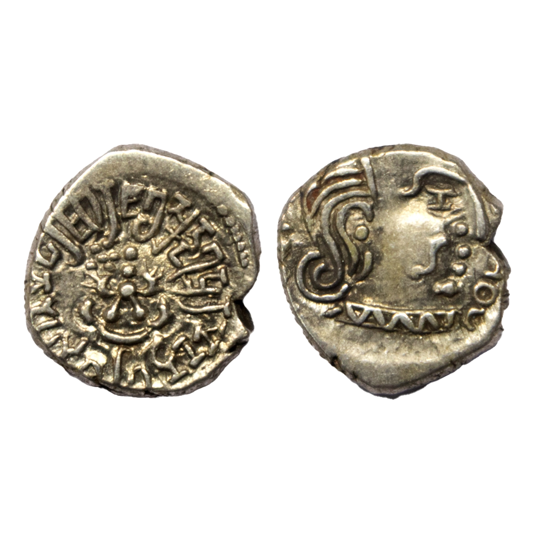 Ancient, Guptas, Chandragupta II (375-415 AD), Archer type, Gold Dinara, 8.07 gms, Obverse: King standing with his right arm outstretched holding an arrow, Garuda standard behind right arm, his left arm is holding a bow, Brahmi legend ‘Chandra’ below left arm, Reverse: Goddess Lakshmi seated facing on a lotus, holding a diadem in her right arm and a lotus stalk in her left arm. Brahmi legend ‘Shri Vikramah‘ in right field, S. Gupta, TOTGE # pg. 240, Archer Type, Class III, very fine+, very rare.