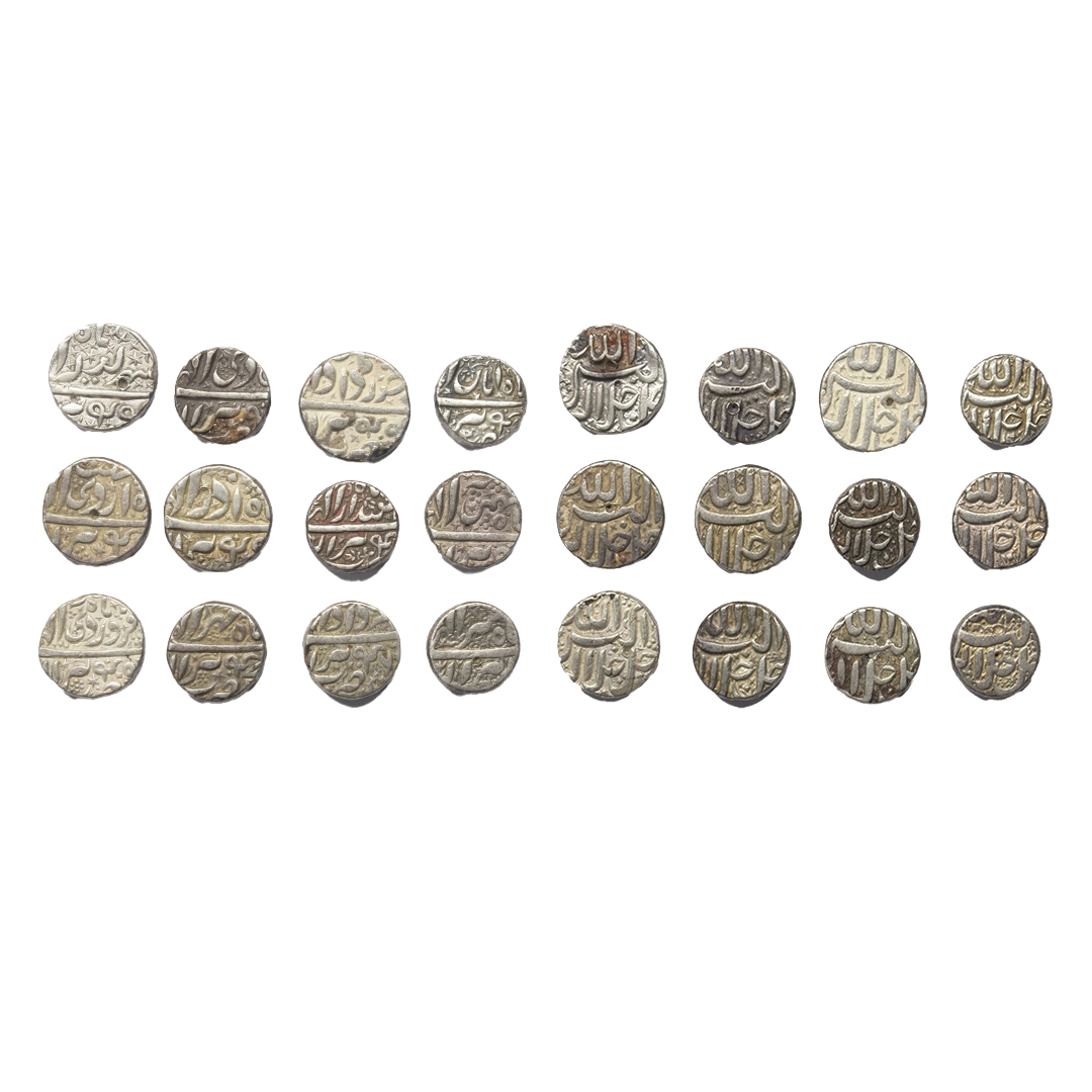 Mughals, Akbar (AH 963-1014 / 1556-1605 AD), Silver Square Rupee, 11.40Grms, Bangala Mint, OBV: Kalima, REV: Poetic couplet read as ‘Sikka-e-Bangala zan dilkhwah shud, Kaab-e-Roshan zarb Akbar Shah shud’. (KM # 86.1).
