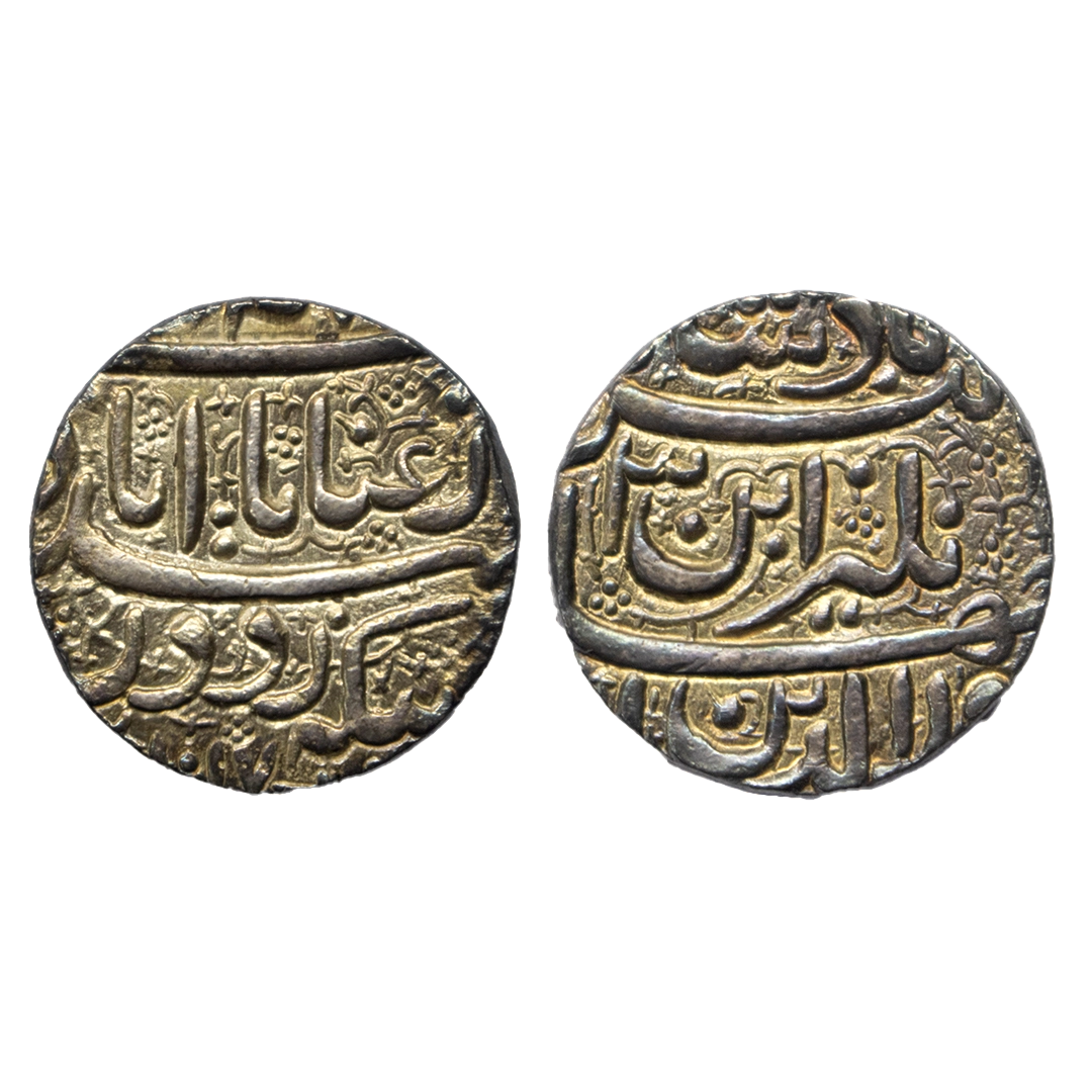 Mughal, Jahangir (AH 1014-1037, 1605-1627 AD), Silver Rupee, 11.23 gms, Ahmedabad Mint, Ilahi Month Aban, KM # 145.2, very fine, scarce.