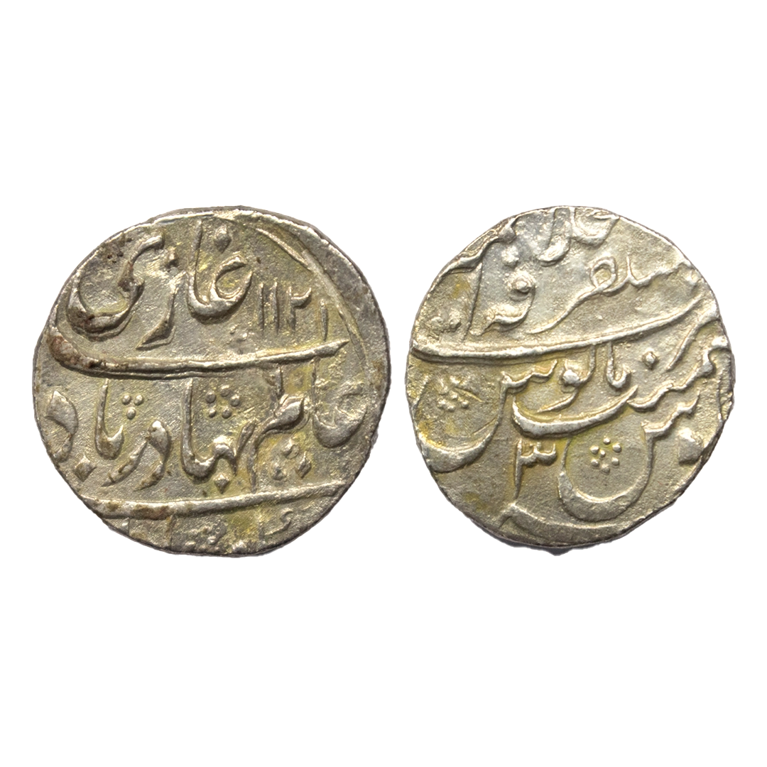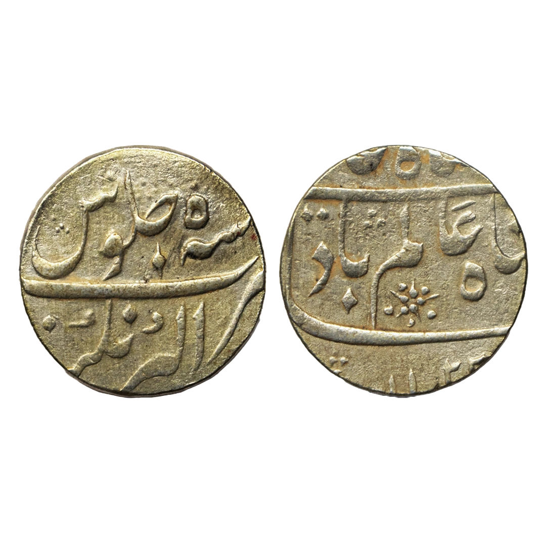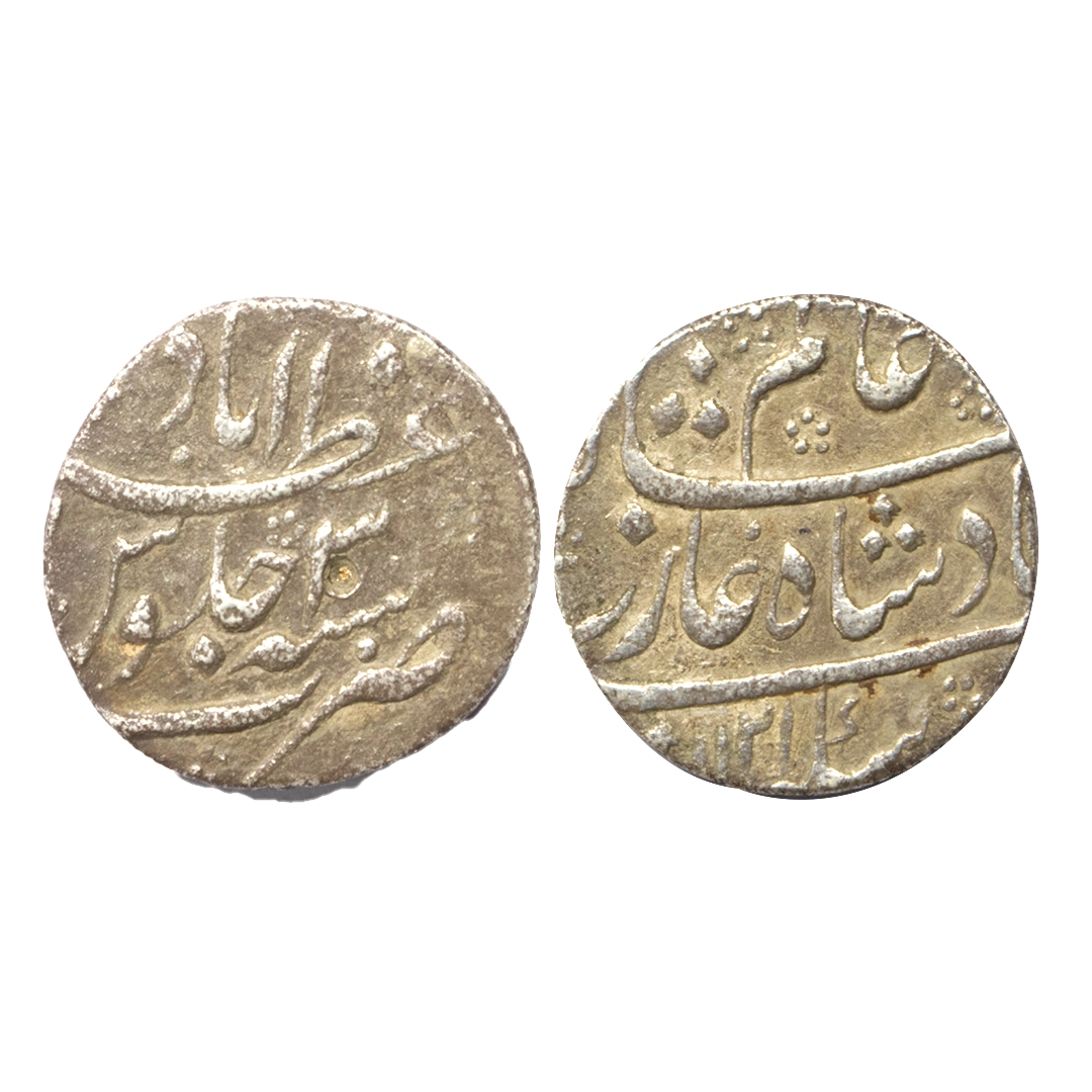 Mughal, Kam Baksh (AH 1119-1120, 1707-1708 AD), Silver Rupee, 11.33 gms, 23.30 mm, Dar-ul-Zafar Bijapur Mint, RY 2, Din-e-Panah couplet, Obv: Persian legend “sikka zad dar dakkan bar khursheed-o-mah, Badshah Kam Bakhsh, dine panah” with 1119 Hijri year, Rev: Persian legend “sana Ahad julus, zarb Bijapur" with epithet "Dar-uz-zafar” at the bottom, the couplet means Struck coins in the Dakkan on the sun and moon, the emperor Kam Baksh, refuge of the faith, KM # 336.2, extra fine, Complete Mint Name, extremely rare in this grade.