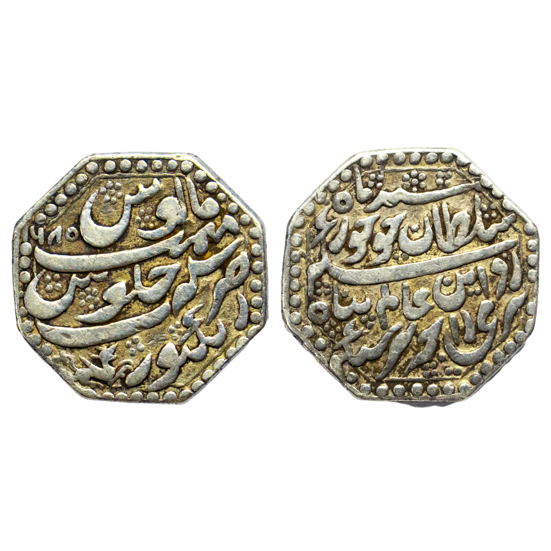 IK, Assam, Rajesvara Simha (1751-1769 AD), silver rupee, Persian Legends instead of regular Bengali/Assamese Legends, Rangpur mint, Sake 1685, R&B O89.1, KM 156, 11.17g. Obv: Persian legend Zad ain Sikka chu Khursheed wa mah/sri Rajesar Sing Sultan-i-Alam Panah. Rev: Persian legend Manus Maimanat 1685 Sanah Jalus Zarb Rangpur, lion facing to right.Very fine, Rare.