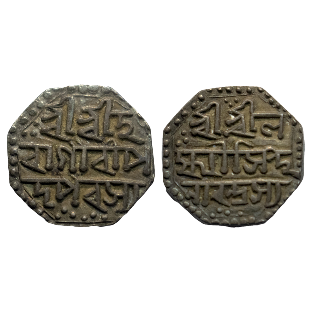 IK, Assam, Rajesvara Simha (1751-1769 AD), silver rupee, sake 1675, Devnagri Legend instead of usual Bengali/Assamese Legend, R&B O82.1, 11.46g. Obv: Nagari legend Sri Sri Mahe/svari Charana Ka/mala Makaranda Ma/dhukarasya, below lion facing to left. Rev: Nagari legend Sri Sri Svarga/Deva Sri Rajesva/ra Simha NrPasya/sake 1675. Extremely fine+, Very rare.