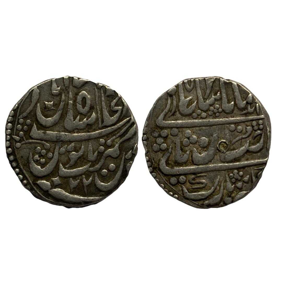 IPS, Jaisalmir State, Akhay Singh (AH 1136-1176, 1722-1762 AD), INO Muhammad Shah (AH 1131–1161, 1719–1748 AD), Silver Rupee, 11.15 gms, Dar al Khilafat Shahjahanabad Mint, frozen RY 22, KM # 10.1, very fine, scarce