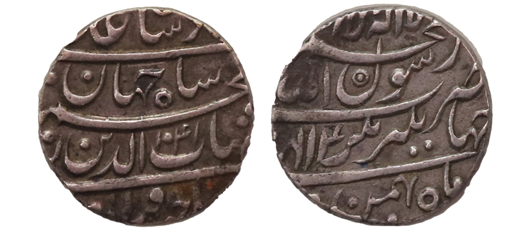 Mughals, Shah Jahan I (AH 1037-1068 / 1628-1658 AD), Silver Rupee, 11.14gms, Daulatabad Mint, AH 1065, RY 29, mint name on rev right margin, both sides legend within square area. (KM # 235.10).