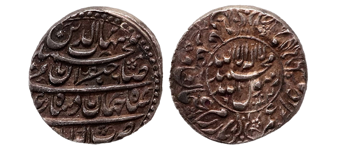 Mughals, Shah Jahan I (AH 1037-1068 / 1628-1658 AD), Silver Rupee, 11.43gms, Akbarabad Mint, Sahib-i-Qiran type, AH 1032, Kalima within circle, name of four caliph in outer margin on obv and ruler name with title in four lines on rev. (KM # 227.2).