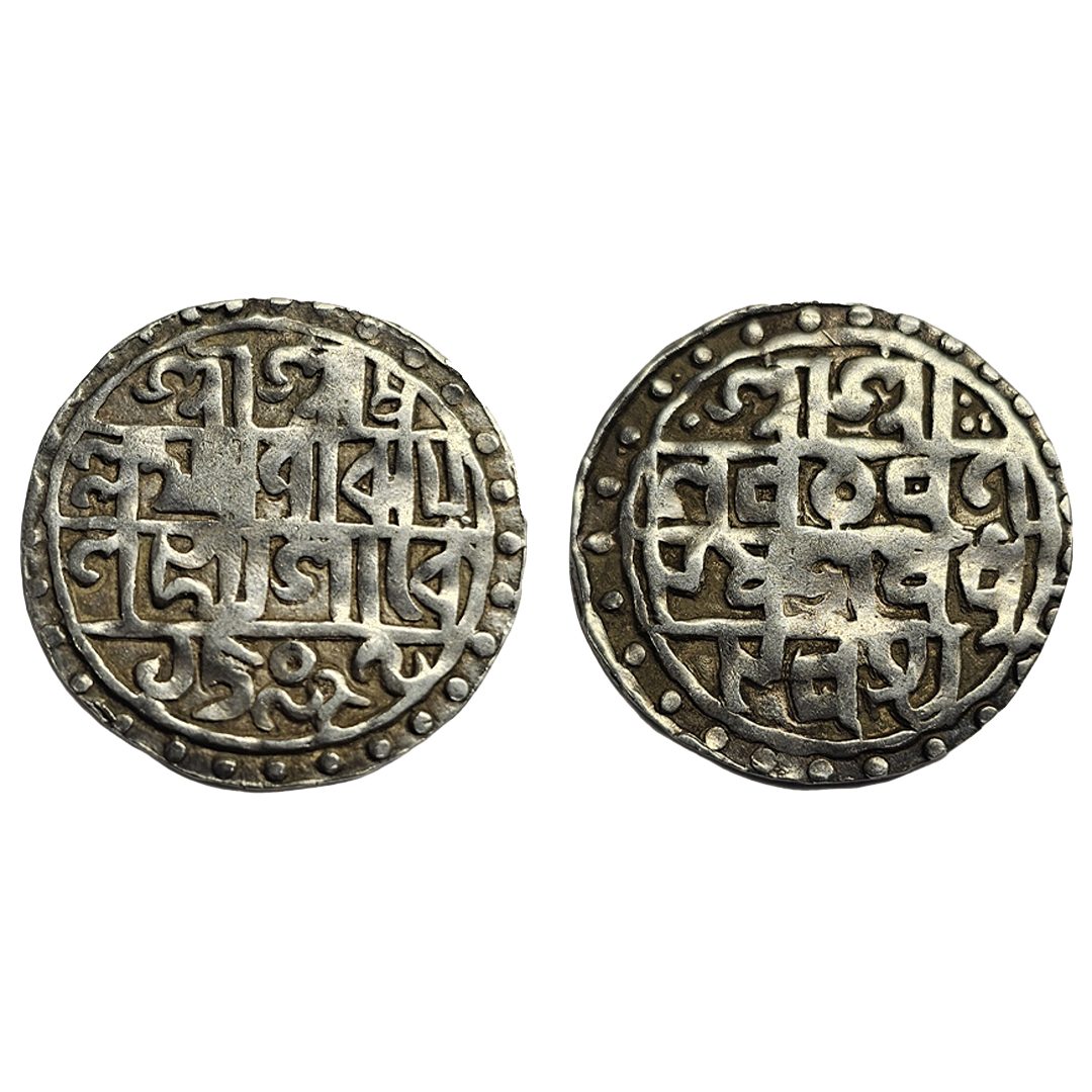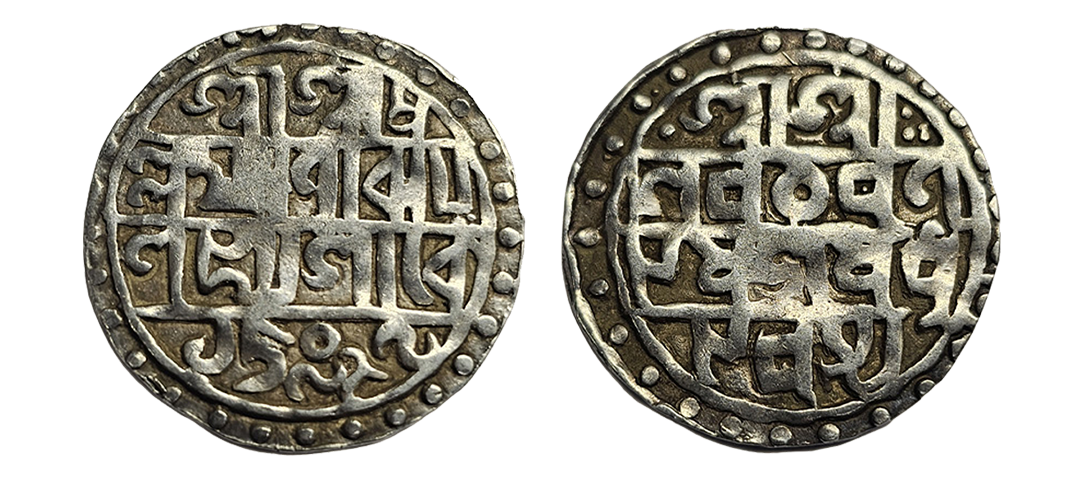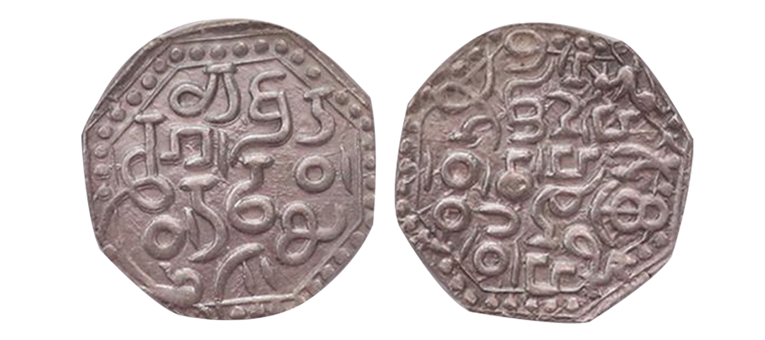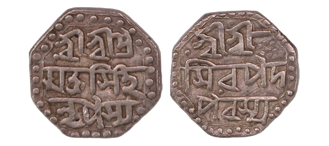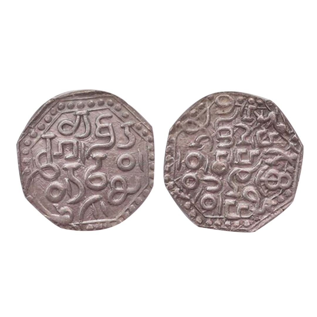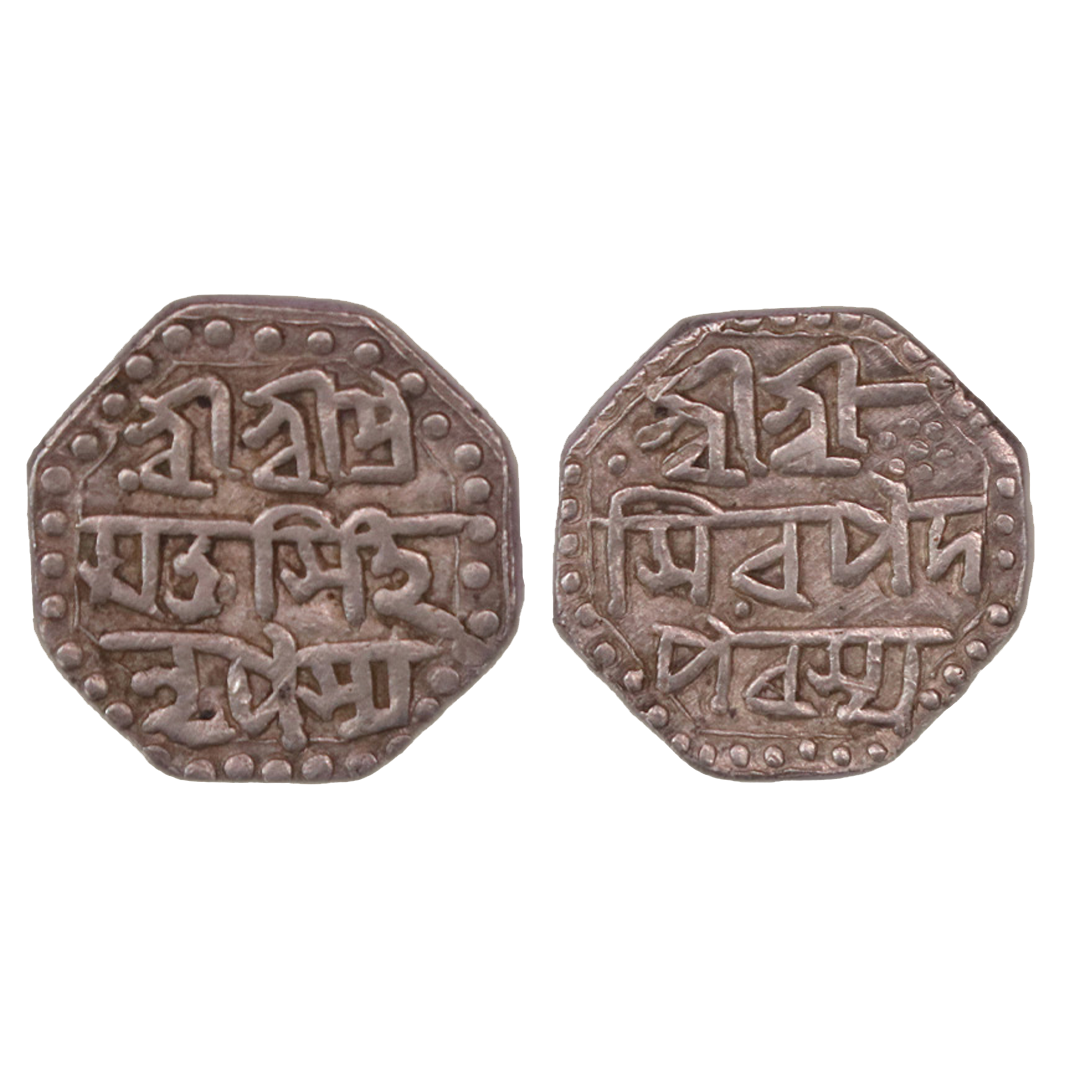 Independent Kingdom, Assam, Shiva Simha alias Sutanpha (SE 1637-1666 / 1715-1744 AD) silver Rupee, 11.42g,with Queen Pramathesvari, Rangpur Mint, SE 1649, RY 14, Persian legend on both sides read as OBV: Shiva Simha Shah Sikka Zad chu Mehar Hum Begam Pramatheswari Shah (Lion Facing right). Rev: Manus Mimnat Sanah 14 Julus Zerb Rangpur 1649. (KM # 74, A.Mitra 94).