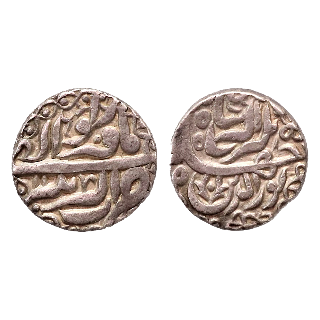Mughals, Jahangir (AH 1014-1037 / 1605-1627 AD), Silver Rupee, 11.31gms, Ahmadabad Mint, OBV: Ba Naqsh-i-naam-i-Jahangir, Badshah-i-Jahan’, REV: Ba-Haft Kishwar ain zar Hameeshah Bad Rawaan. (KM # 149.3).