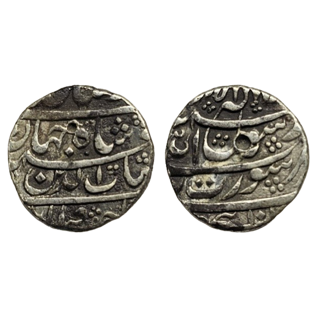 Mughals, Shah Jahan I (AH 1037-1068 / 1628-1658 AD), Silver ½ Rupee, 5.70gms, Patna Mint, Rai’jabad couplet on rev top, do chashmi he type.