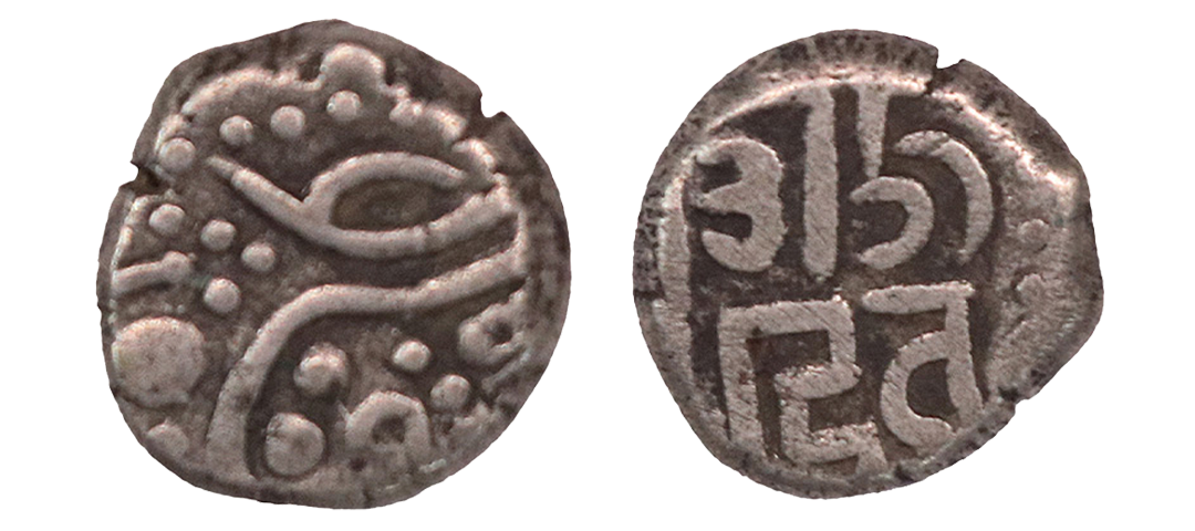 Medieval India, Chalukyas of Gujarat, Siddharaj Jayasimha (c. 11th AD), Silver Damma, 0.36gms, OBV: Elephant walking to right side within dotted circle, REV: Nagari legend in three lines ‘Srimaj Jayasimha Piya'. (Deyell # 163). Very Fine.