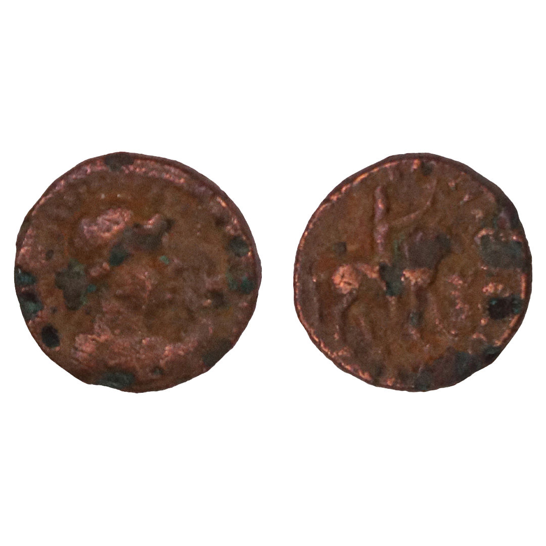 Ancient India, Kushanas, Soter Megas alias Wima Takto (c. 90-113 AD), Copper Drachma, 2.06gms, OBV: Bust of Soter Megas facing right holding spear in front of face and monogram behind the head of king, REV: The King mounted on a horse to right with around Kharoshti legend.