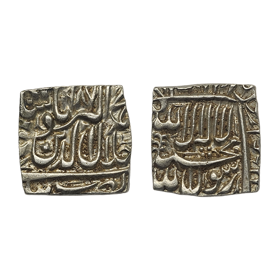 Akbar (AH 963-1014 / 1556-1605 AD), silver rupee, 11.06grams, 982 AH, Dar ul Khilafat Ahmedabad Mint, Struck from Gold Mohur Die. Very fine. Rare