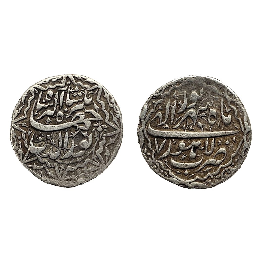 Jahangir (AH 1014-1037 / 1605-1627 AD), Silver Heavy Rupee, 14.20g (25% over weight) known as ’ Sawai’ Rupee, Lahore Mint, AH 1018, RY 5, Ta-Falak couplet which reads as Ta Falak bud dar bad rawan bad har; Sikka Lahore banam Shah Jahangir, these coins were struck only during the fourth, fifth and sixth regnal years of the emperor. (KM # 158.5). Extra fine, Very rare.