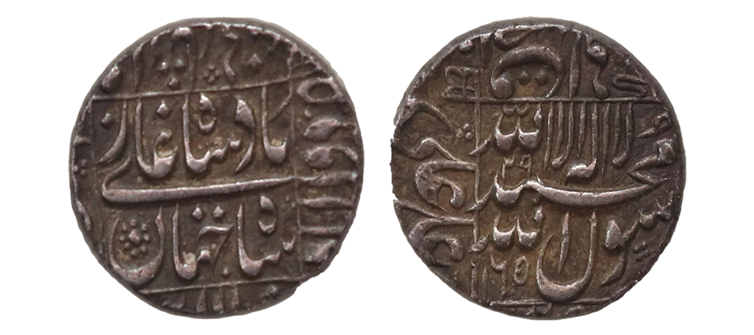 Shah Jahan I (AH 1037-1068 / 1628-1658 AD), Silver ¼ Rupee / Nisar, 2.53gms, Baldah Burhanpur Mint, RY 3, OBV: Shahjahan badshah ghazi, Nisar on bottom , REV: Zarb baldah burhanpur with regional year. (KM # 240.9 var.). Very fine+, very rare.