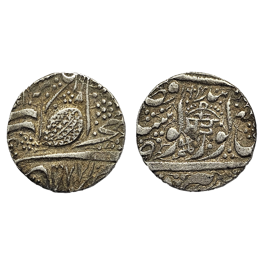 Sikh Empire, Kharak Singh (VS 1896-1897/1839-1840 AD), Silver Rupee, 11.11gms, Sri Amritsar Mint, VS 1885, AD [18]97, with GURMUKHI SAT below the Chattra on obv, Devanagari letter 'Om' on rev, Nanak shahi couplet. (Herrli # 01.11.04). Extra Fine Rare