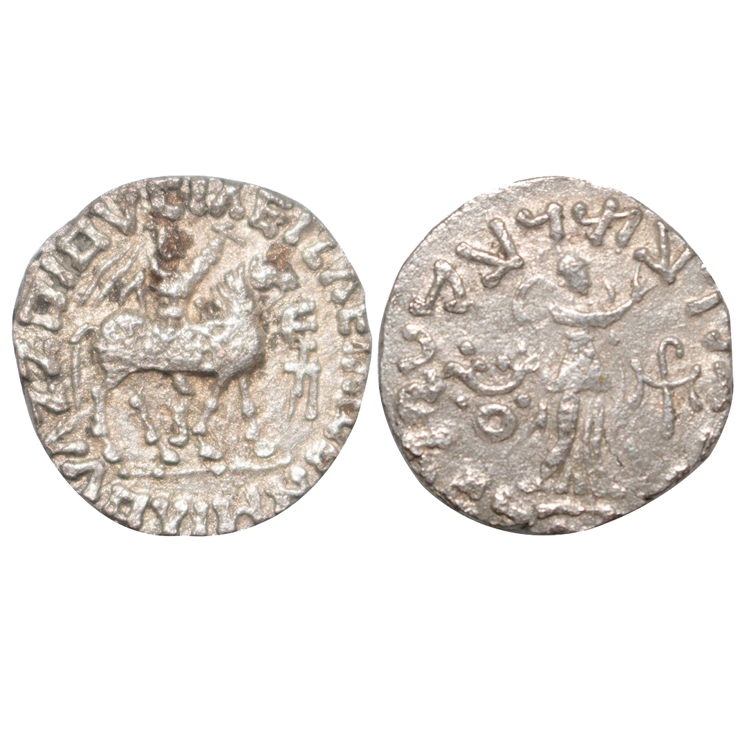 Indo-Greeks, Hermaeus (c. 40-1 BC), Silver Drachma, 1.53grms, OBV: diademed and draped bust of king facing to right around Greek legend, REV: Zeus enthroned holding sceptre and palm, with Kharoshti legend around. (Bop & Rahman # 546-571). Very fine