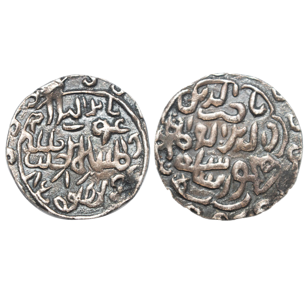 Bengal Sultanate, Nasir al-din Mahmud Shah (AH 837-864 / 1433-1459 AD), Silver Lion Tanka, 10.83grms, Mint off flan, OBV: Lion walking to right side, REV: Al-mu ayyad legend. (G&G # B480). Very fine
