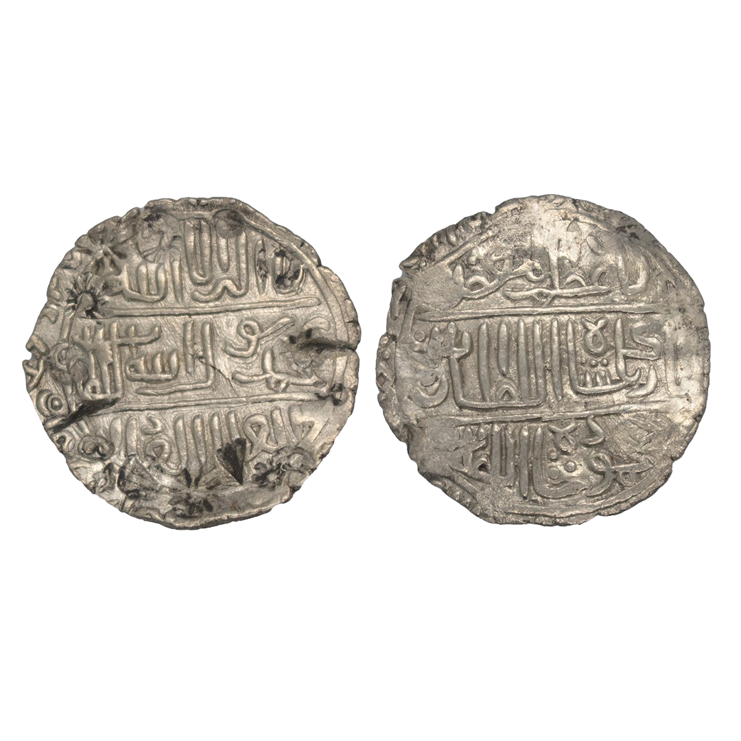 Bengal Sultanate, Nasir al-din Mahmud Shah (AH 837-864 / 1433-1459 AD), Silver Lion Tanka, 10.83grms, Mint off flan, OBV: Lion walking to right side, REV: Al-mu ayyad legend. (G&G # B480). Very fine