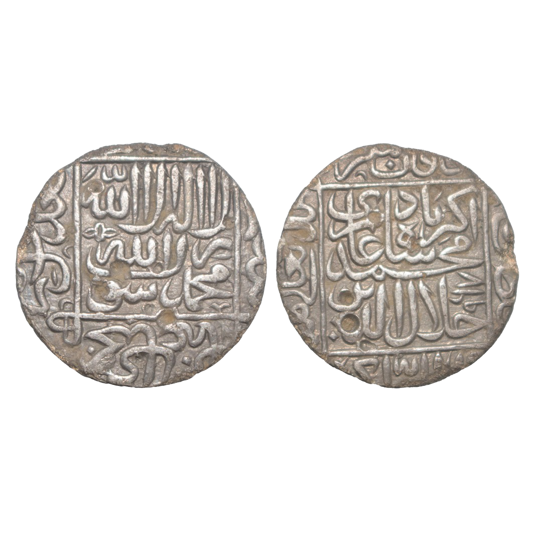Akbar (AH 963-1014 / 1556-1605 AD), Silver 1/2 Rupee, 5.66grms, Agra Mint, Ilahi type, Month Azar, year 47, with the face value Darb word (1/2 Rupee) below mint name, legend on obv within quatrefoil and legend on rev within eight pointed star. Unlisted in KM. extremely fine