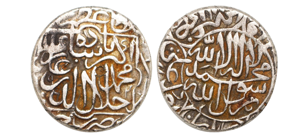 Akbar (AH 963-1014 / 1556-1605 AD), Silver Rupee 11.33g, Allahabad Mint, Year 44, Rebellion Issue of Prince Salim, poetic Couplet read as ?Hamasha hamchu zar mihr wa mah raij bad / baghrub wa sharq jahan sikka Allahabad?. (KM # 97.1). extremely fine
